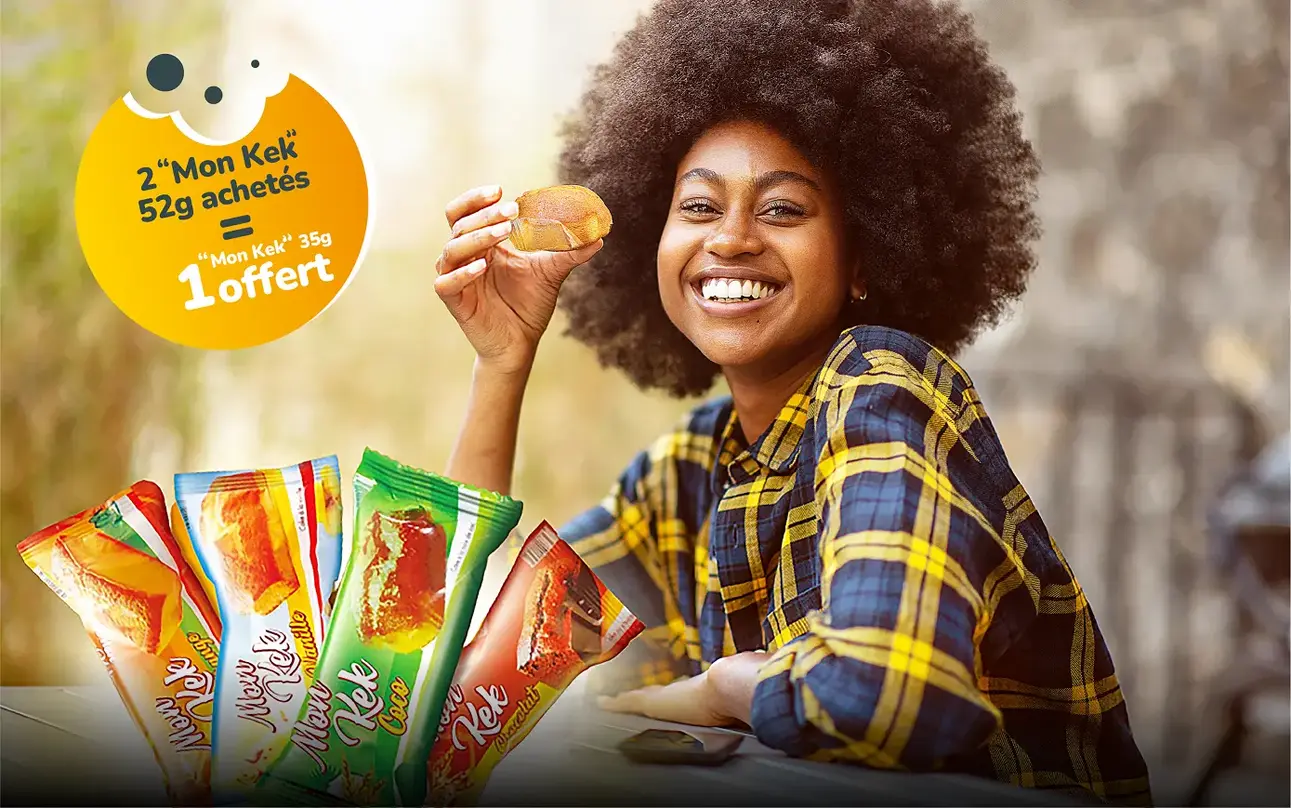 Faites le plein de vos snacks MON KEK préférés ! Achetez 2 paquets de 52g de "Mon Kek" et recevez 1 paquet de 35g de gratuite.