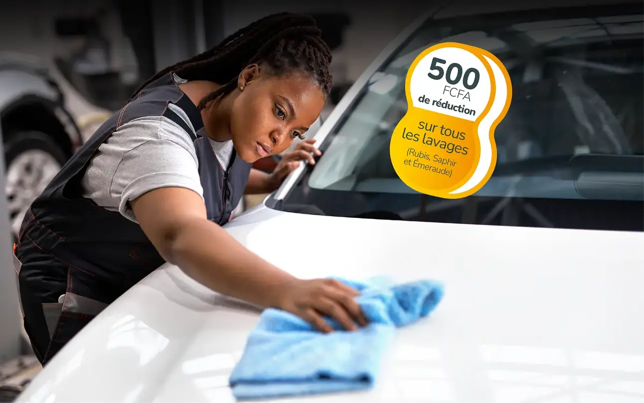 Dans vos baies de lavage, profitez d'une remise de 500 FCFA sur les offres Rubis, Saphir et Émeraude.