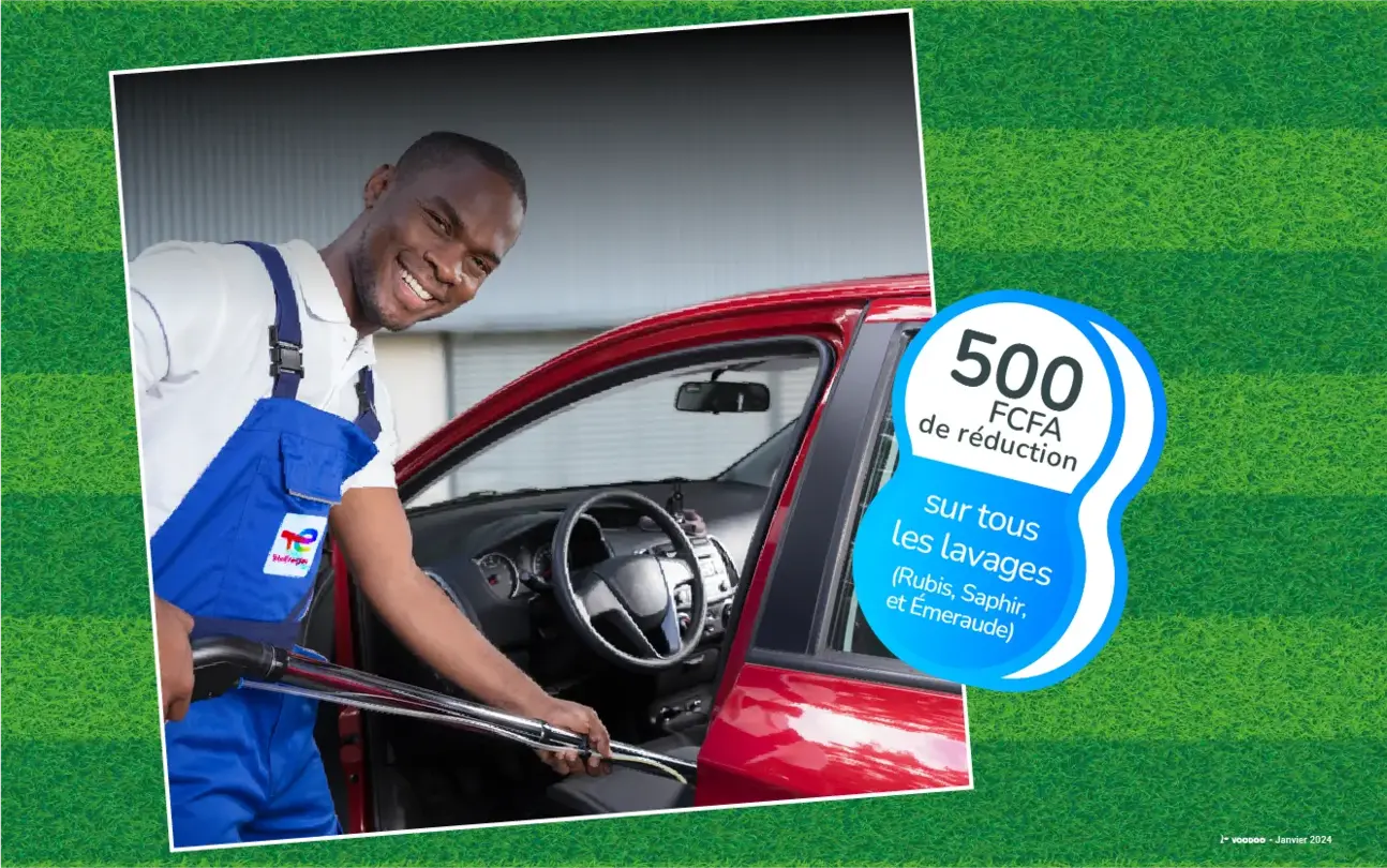 Vous pouvez bénéficier d'une réduction de 500 FCFA sur tous les forfaits dans nos baies de lavage. Ainsi, que vous souhaitiez un lavage rapide ou un nettoyage plus approfondi, nous avons ce qu'il vous faut.