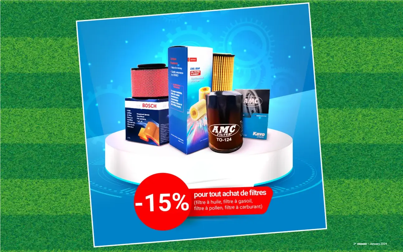 Pour tous nos clients Autofast, nous offrons une réduction fantastique de 15% sur tous les filtres de voiture. Veillez à ce que votre voiture soit en parfait état pour le tournoi et au-delà.