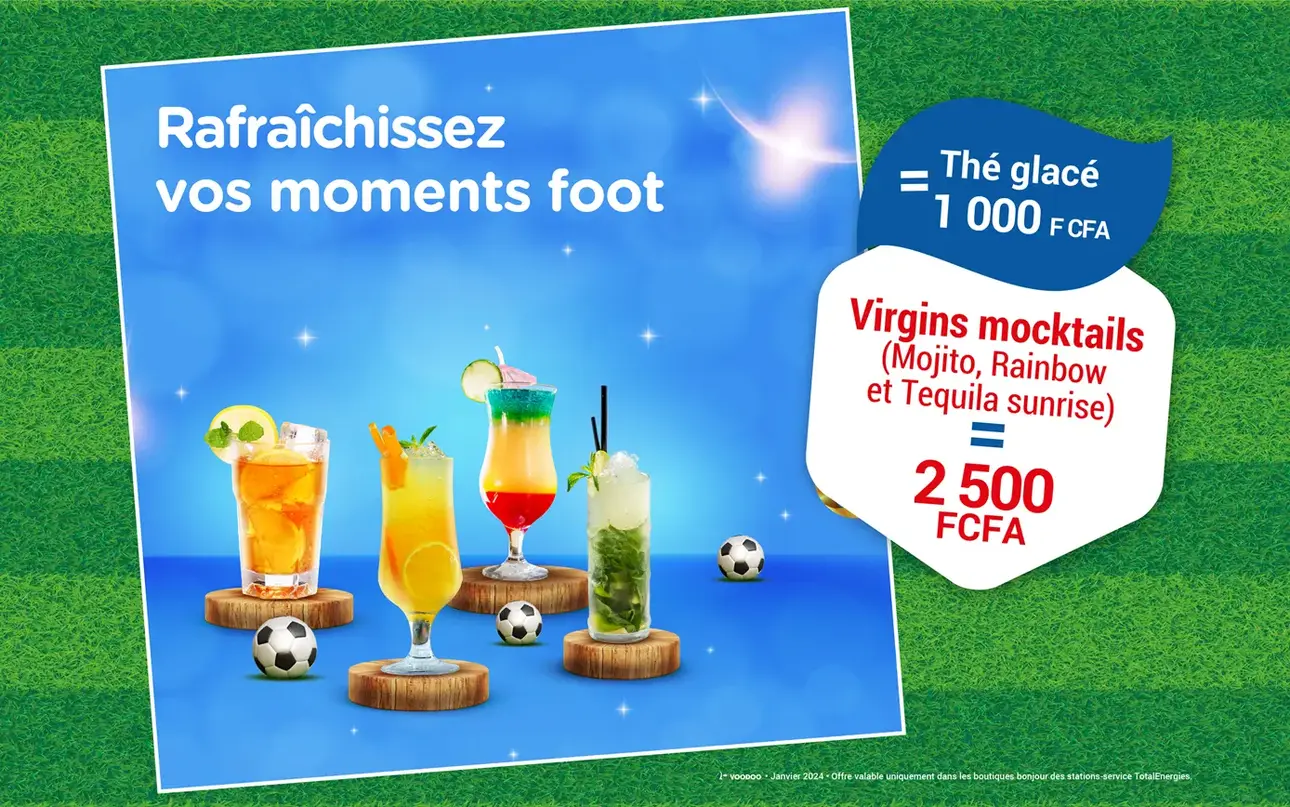 La TotalEnergies CAF, Coupe d'Afrique Côte d'Ivoire 2023 est lancée et nous sommes ravis d'annoncer des promotions exclusives pour nos clients. Jusqu'au 11 février 2024, profitez de ces offres dans la limite des stocks disponibles.
