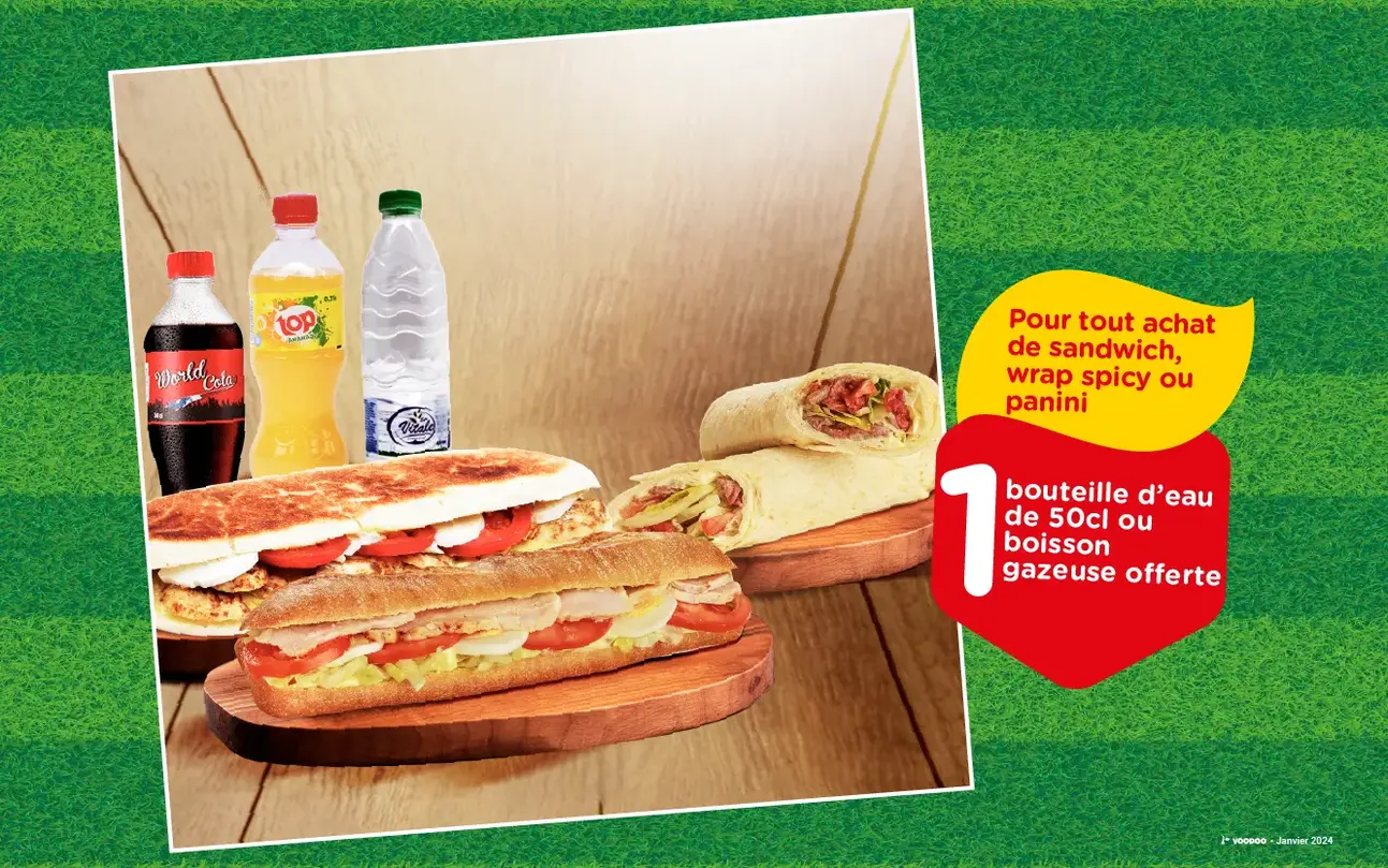 Si vous souhaitez manger sur le pouce, rendez-vous dans les restaurants La Croissanterie pour vous offrir un sandwich. Vous recevrez une bouteille d'eau de 50 cl gratuite pour chaque sandwich acheté.