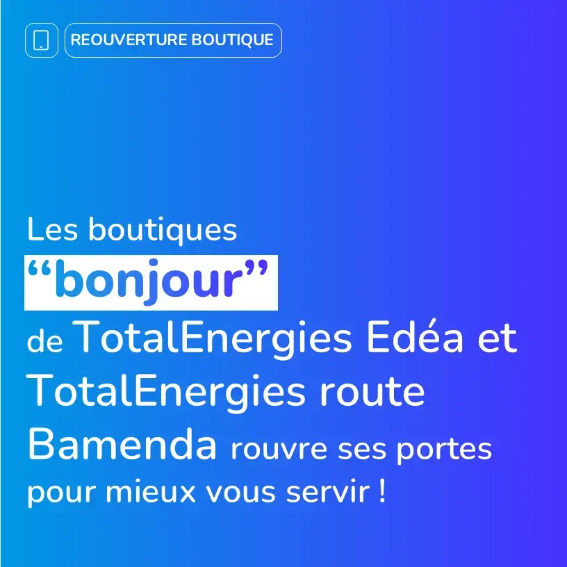 Après plusieurs semaines de travaux, TotalEnergies Marketing Cameroun est heureux d’annoncer la réouverture de deux boutiques ‘’bonjour’’ :